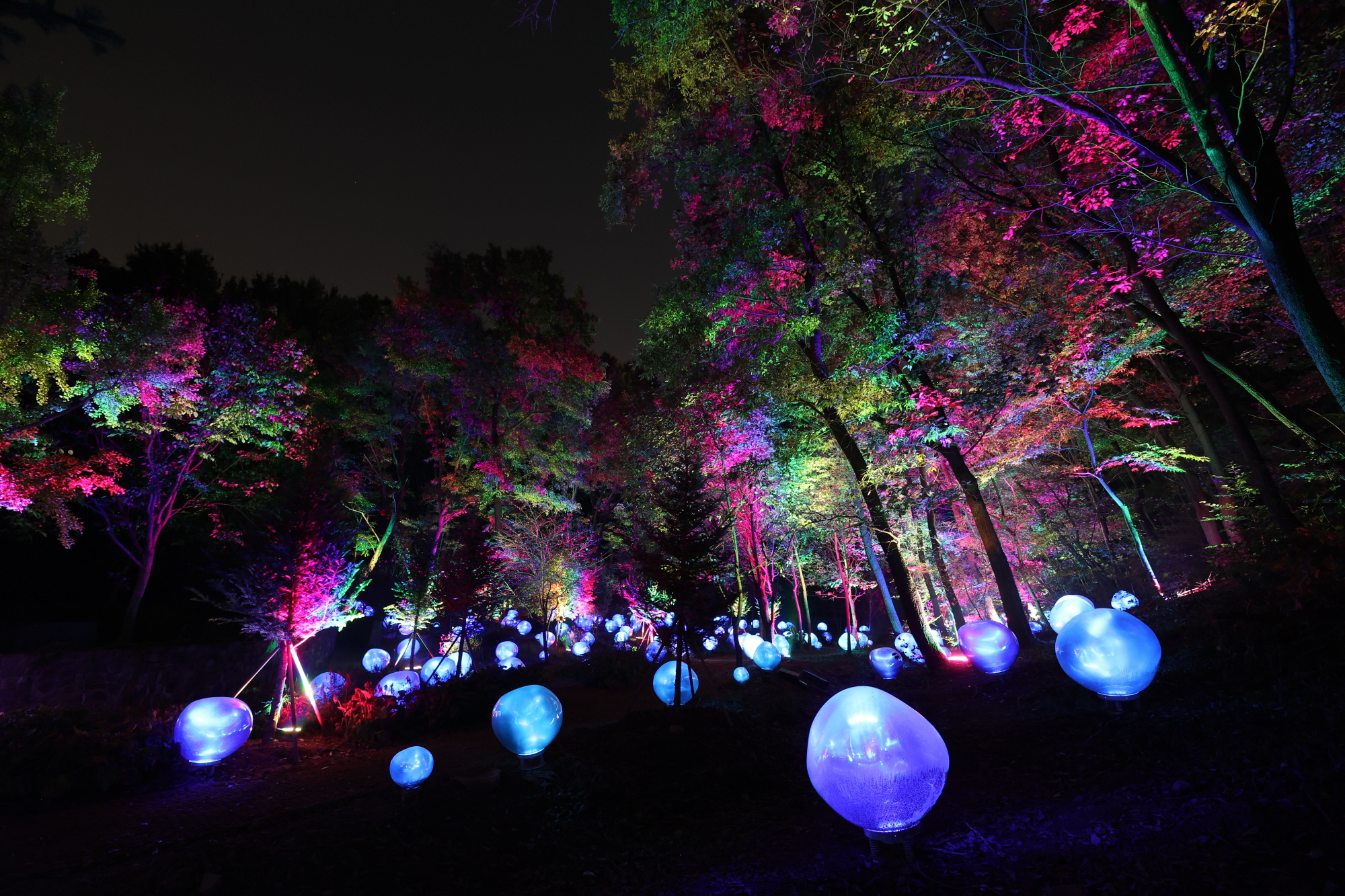 À̾ ‘¹«Áö°³·¹ãÀ̽½’ ±¸°£¿¡¼­´Â ¹«Áö°³¿Í ¾È°³°¡ ¾î¿ì·¯Á® ½Åºñ·Î¿î ºÐÀ§±â¸¦ ÀھƳ»°í, ‘ºñ’ ±¸°£¿¡¼­´Â ·¹ÀÌÀú Á¶¸íÀ¸·Î ¸¸µé¾îÁø ºûÁٱⰡ ºñó·³ ³»¸®¸ç, ½Ã¿øÇÑ ºø¼Ò¸®°¡ °ø°£À» °¡µæ ä¿î´Ù. ‘´Þ¹ã’ ±¸°£¿¡¼­´Â ¿¬¸ø À§ Ä¿´Ù¶õ ´ÞÀÌ ³¶¸¸À» ´õÇϰí, ‘µµÈ­¾¾’ ±¸°£¿¡¼­´Â ¹ÝÅõ¸íÇÑ À¯¸® Á¶¸íÀÇ º¹»ç²É ¾¾¾ÑÀÌ ´Ùä·Î¿î ºûÀ» ´ã¾Æ³½´Ù.